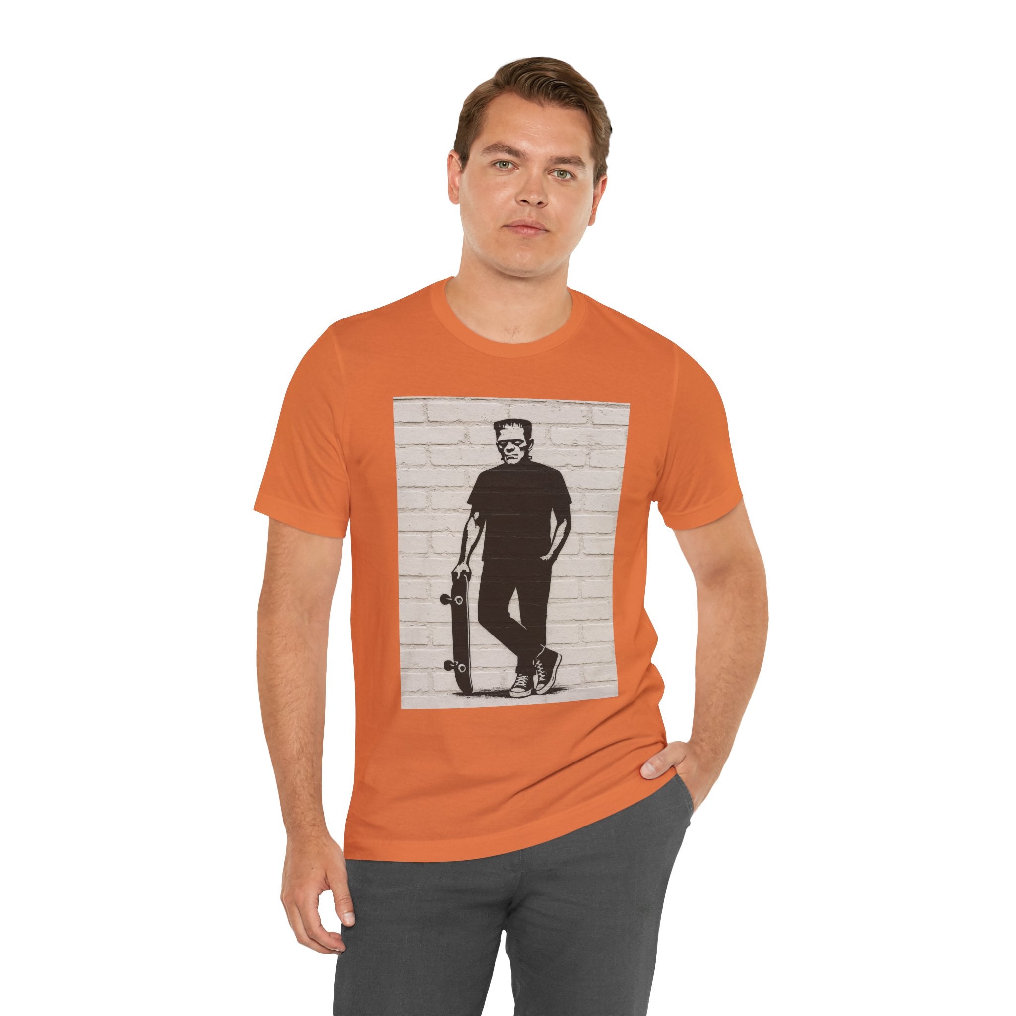 Introducing the perfect addition to your wardrobe: a Unisex Jersey Short Sleeve Tee that combines comfort with effortless style. This lightweight tee offers a relaxed fit, making it ideal for casual outings or layered under a jacket for a semi-formal look. Made from 100% Airlume combed and ring-spun cotton, it breathes easily, keeping you comfortable whether you're out with friends or lounging at home. The vibrant prints, achieved using cutting-edge printing techniques, ensure your personal style stands out. This tee is a great gift for fashion enthusiasts, skateboard lovers, or anyone who appreciates clean, stylish designs. Perfect for birthdays, holidays, or just because, it adds a touch of character to any occasion.